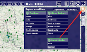 Neben der Navigation mit der Maus kann auch über das Regions-Menü rechts oben zu vorgespeicherten Kartenausschnitten gewechselt werden. Gespeicherte Ausschnitte können durch Rechts-Klick auf die entsprechende Region noch angepasst werden.